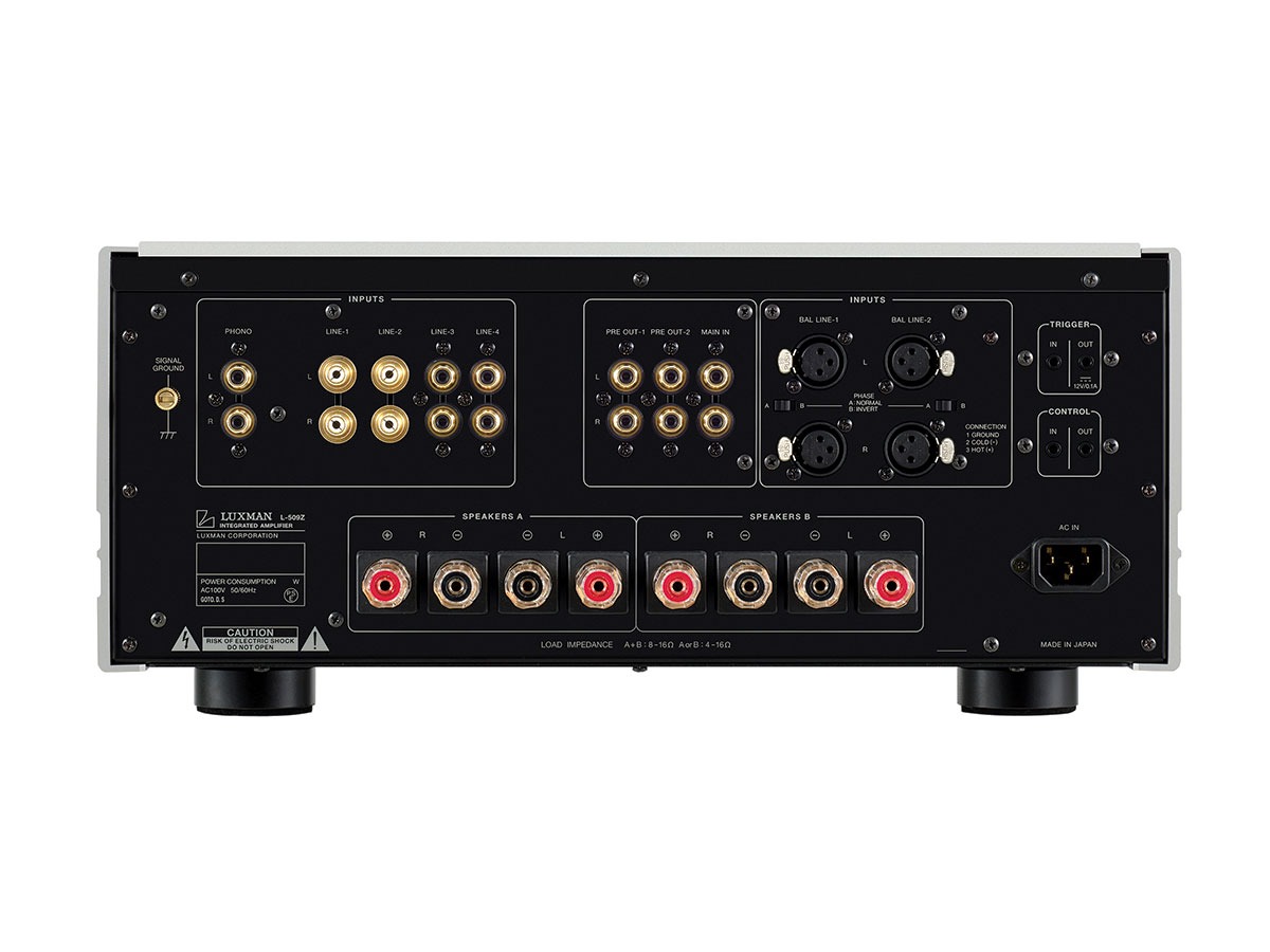 増幅回路で発生した歪成分だけを主アンプにフィードバックすることで、優れた静特性を実現し無帰還方式のように自然な音質の得られるラックスマン独自の増幅回路“ODNF※”。2021年に発売したフラグシップ・ステレオパワーアンプM-10Xの開発時に、その技術的思想はそのまま、長年に渡る改良で大規模化した回路構成をゼロベースで再構築し、次世代コンポーネントを担う高音質・増幅帰還エンジン“LIFES(ライフス)”を完成させました。L-509Zでは、フルディスクリートで構成したプリ部とパワー部のそれぞれに、“LIFES Version 1.0”を同時搭載。ひとつの筐体にセパレートアンプのクオリティを内在させた“ワンボディセパレート”のコンセンプトにふさわしいプリメインアンプとして、かつてない規模の増幅回路を搭載した高次元の音楽性を獲得しました。ファイナル段にはバイポーラトランジスタによる3段ダーリントン4パラレル・プッシュプル構成を採用。8Ωスピーカー接続時の120W+120Wから、4Ω時の240W+240Wまで、単体のパワーアンプに匹敵する大出力と完全なパワーリニアリティ性能を達成し、エネルギー感あふれる壮大なサウンドを実現しました。